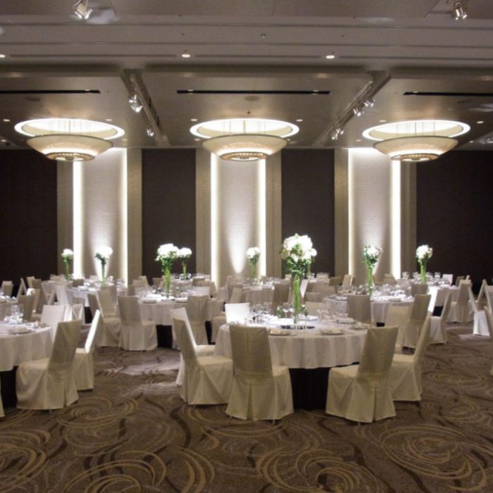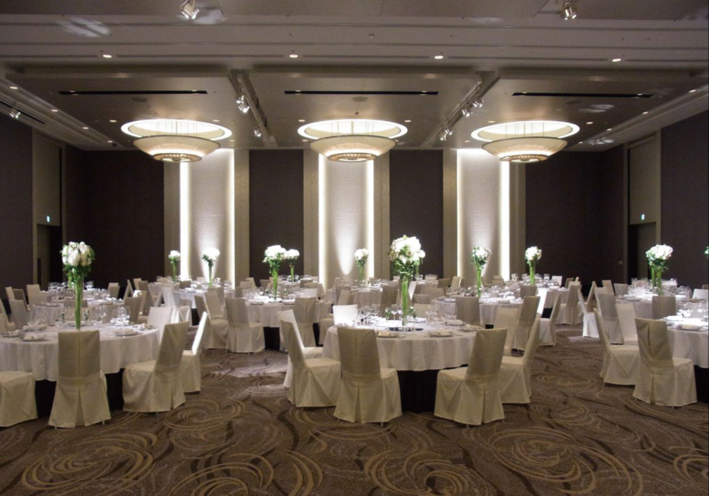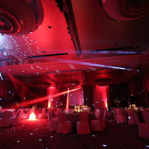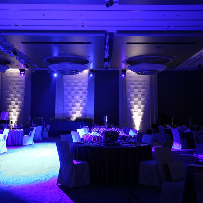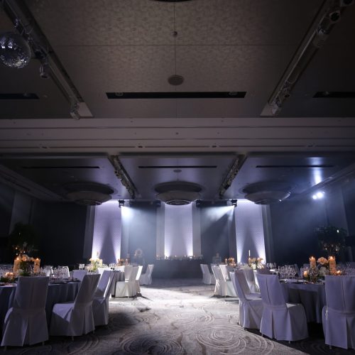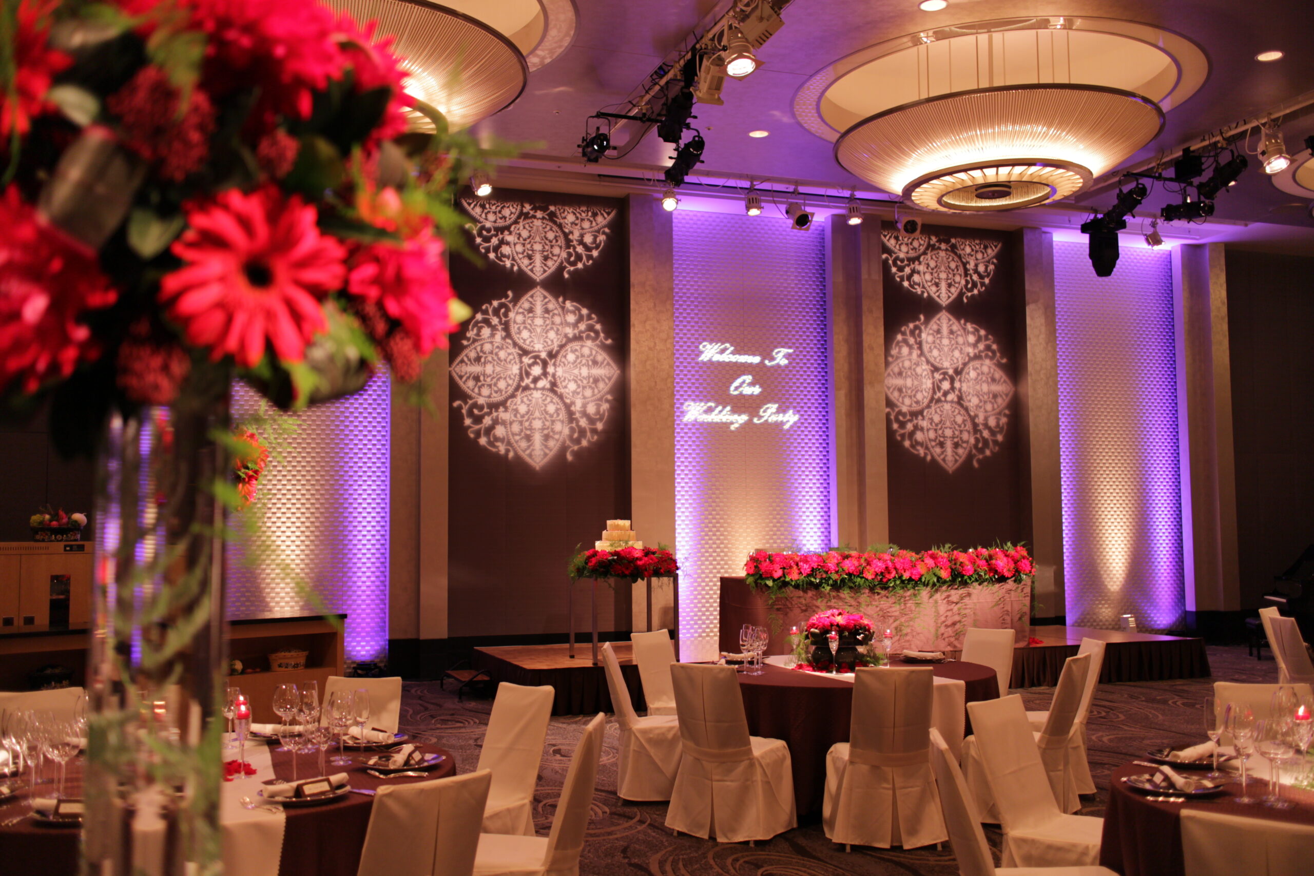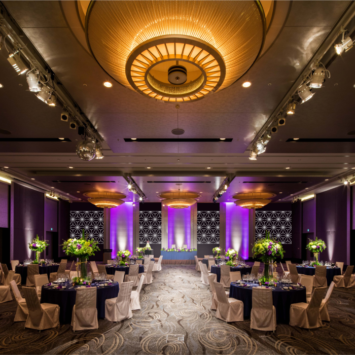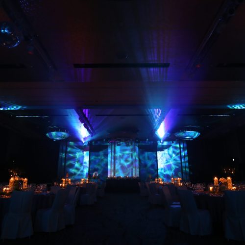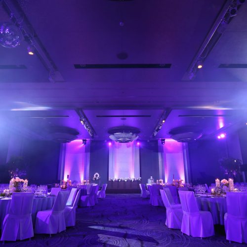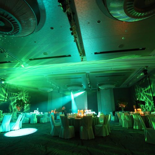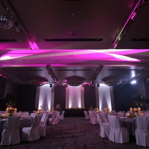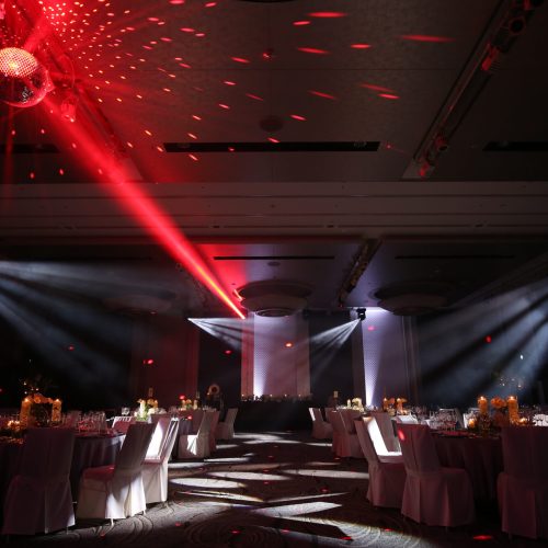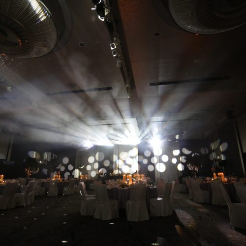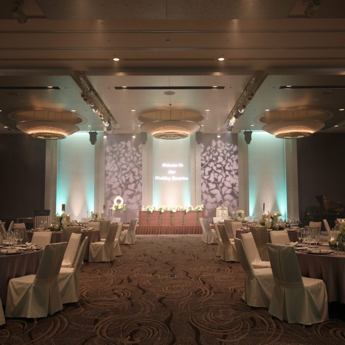 披露宴会場をフォトジェニックに彩るための特別な照明と音響機材を取り入れた総合演出です